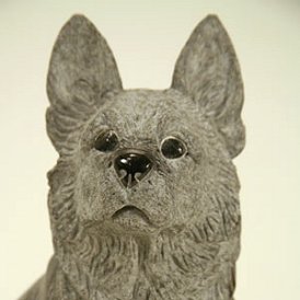 シェパードの精悍な顔つきは磨き部分と叩き部分の、細かい彫刻で表現しています。